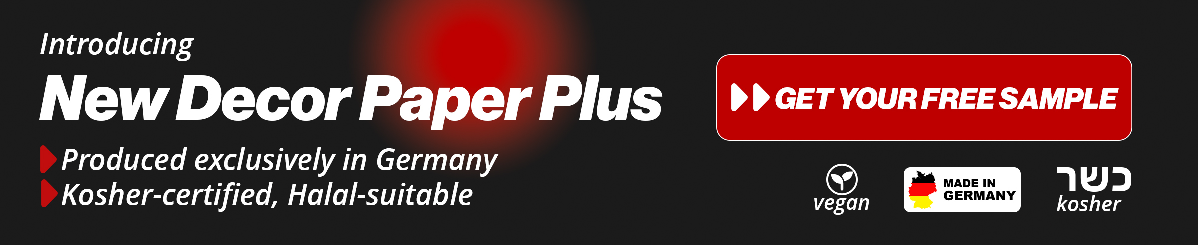 Decor Paper Plus, exclusively produced in Germany, impresses with an exceptionally smooth and white surface for high-resolution designs. Ideal for photo cakes and applications that require razor-sharp detail.