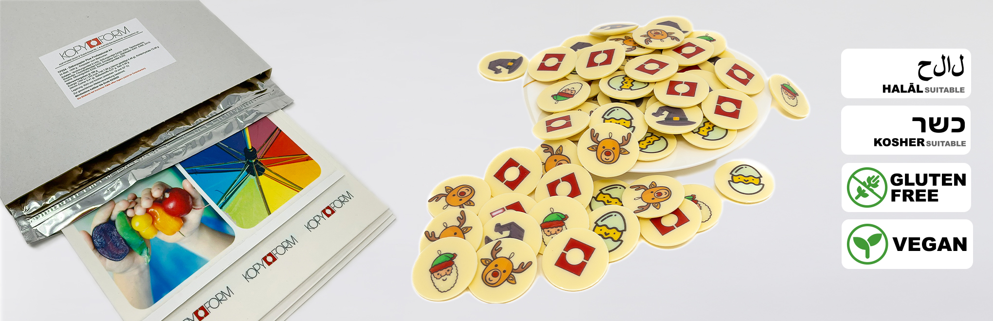 Your specialist in professional edible printing. Discover high-quality Edible paper (decor paper), fondant paper, sugar transfer sheets, Choco Sheets®, Icing sheets and edible ink – developed for pastry shops, bakeries, patisseries, confectioners, edible-printing specialists and resellers.