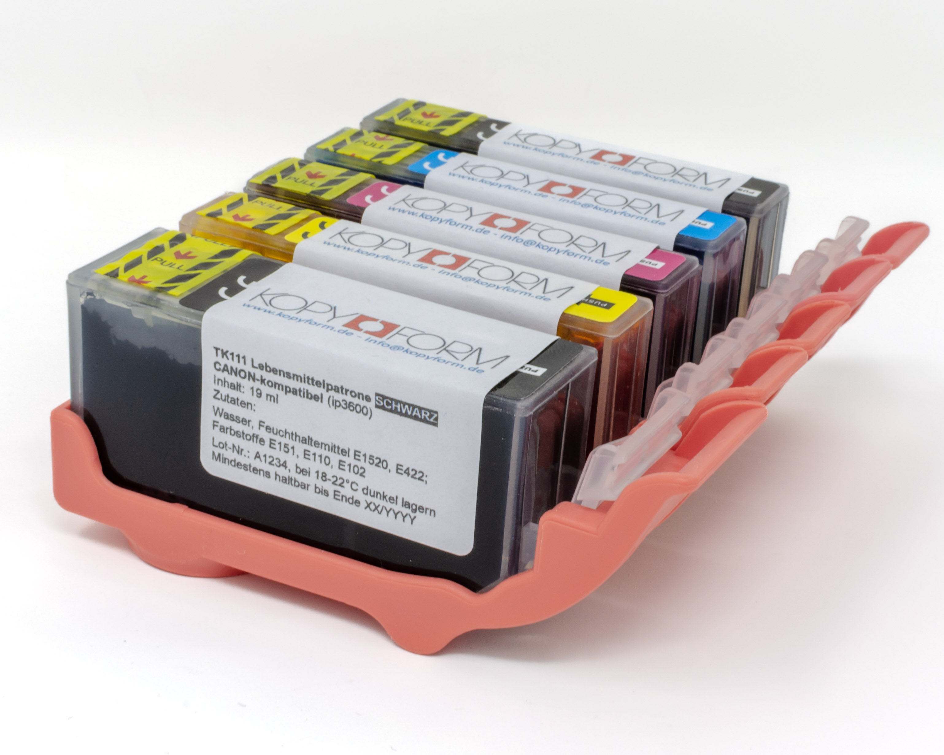- Edible ink from KOPYFORM in cartridges identical to Canon PGI-520 / CLI-521